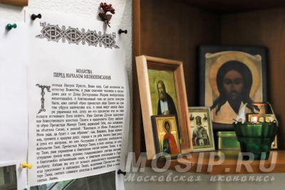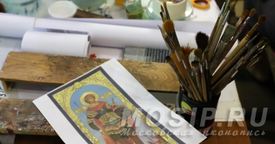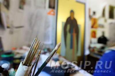 Все художники начинают работу с молитвы (специальный текст даже висит у алтаря), а работают под проповеди и аудиокниги про православных святых.