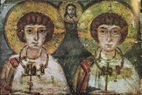 Мученики Сергий и Вакх. Энкаустическая икона. VI или VII век. Монастырь святой Екатерины на Синае.